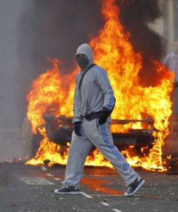 Some claim this is anarchy, “This is the uprising of the working class. We’re redistributing the wealth,” said Bryn Phillips, a 28-year-old self-described anarchist, as young people emerged from the store with chocolate bars and ice cream cones. Phillips claimed rioters were motivated by distrust of the police, and drew a link between the rage on London’s street and insurgent right-wing politics in the United States. “In America you have the tea party, in England you’ve got this,” he said.” This is a superficial understanding of anarchy. Anarchy is the belief that people should govern themselves. It is popularized by the Sex-Pistols, but was dealt with better by the movie V for Vendetta. Parents are meant to stop this, apparently. The police want parents to sit down with their children. However parents make no connections with the blazing London of V for Vendetta that they will watch with their kids and the blazing businesses in London outside their front door. The worldviews embedded in movies and even Disney and Sesame Street advocate looking to ourselves. Look at how the youth who have been in the heart of the Disney system are growing up. The Lindsay Lohan who was a child star was not convinced by the roles she played to be good. The head of the police wants to label this activity as “gratuitous violence, criminal damage, and burglary.” However, the youth he confronts would call their actions wild fun, destruction, and taking back what’s theirs.