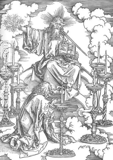 12 I turned around to see the voice that was speaking to me. And when I turned I saw seven golden lampstands, 13 and among the lampstands was someone like a son of man,[d] dressed in a robe reaching down to his feet and with a golden sash around his chest. 14 The hair on his head was white like wool, as white as snow, and his eyes were like blazing fire. 15 His feet were like bronze glowing in a furnace, and his voice was like the sound of rushing waters. 16In his right hand he held seven stars, and coming out of his mouth was a sharp, double-edged sword. His face was like the sun shining in all its brilliance.